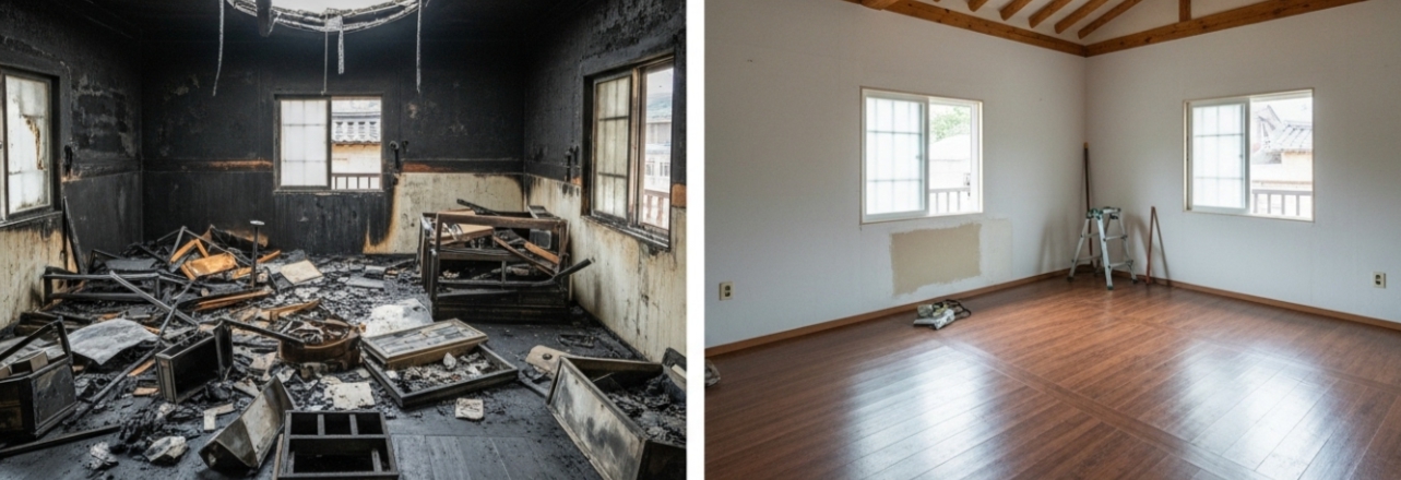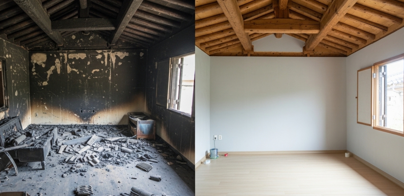 벽 속까지 스며든 그을음, 사라지지 않는 악취, 눈에 보이지 않는 구조 손상까지 화재 복구는 생각보다 훨씬 복잡하고 전문적인 과정을 필요로 합니다.