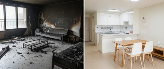 이번 글은 동두천 생연동 아파트 화재를 실제로 복구한 화재 청소 후기입니다. 아파트 도배 공사 까지 화재복구 견적의 모든 내용을 공개합니다.