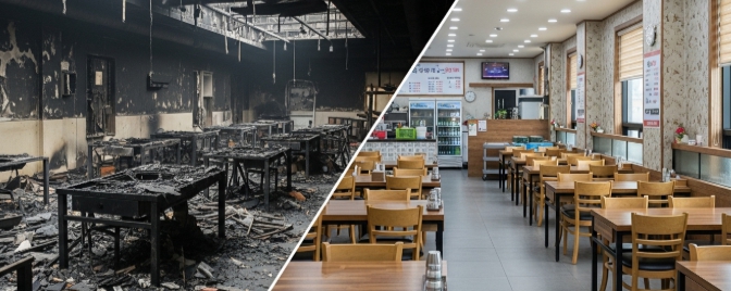 10년간 운영하던 일식당이라 단골손님이 많았고, 건물주도 2층 사무실 피해로 걱정이 컸습니다. 이 글은 22일간 진행된 실제 복구 과정을 담은 화재 청소 전문업체 후기입니다.