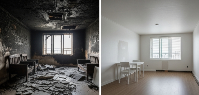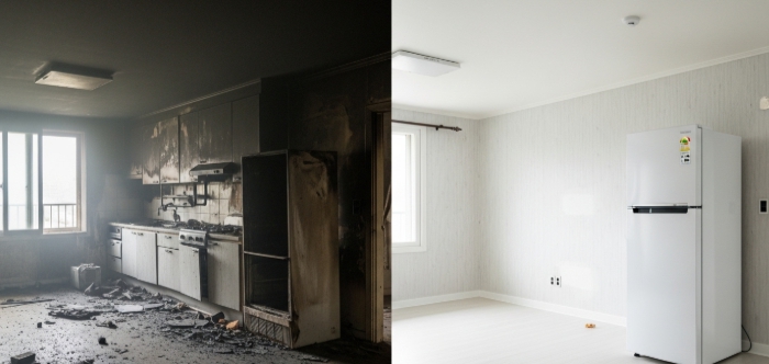 마포구 아파트 화재 청소 전과 후의 모습