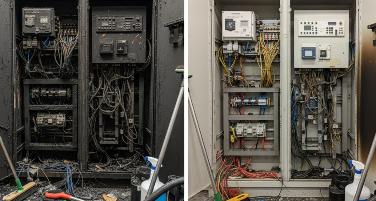 로그인청소는 안산 지역의 화재청소 전문업체로, 수배전반·배전반 청소와 전기실 복구 분야에서 체계적이고 전문적인 서비스를 제공합니다.