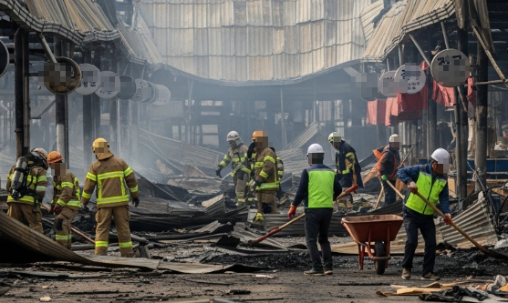 화재로 손상된 구조물의 안정성, 전기 및 가스 누출 여부를 확인합니다.