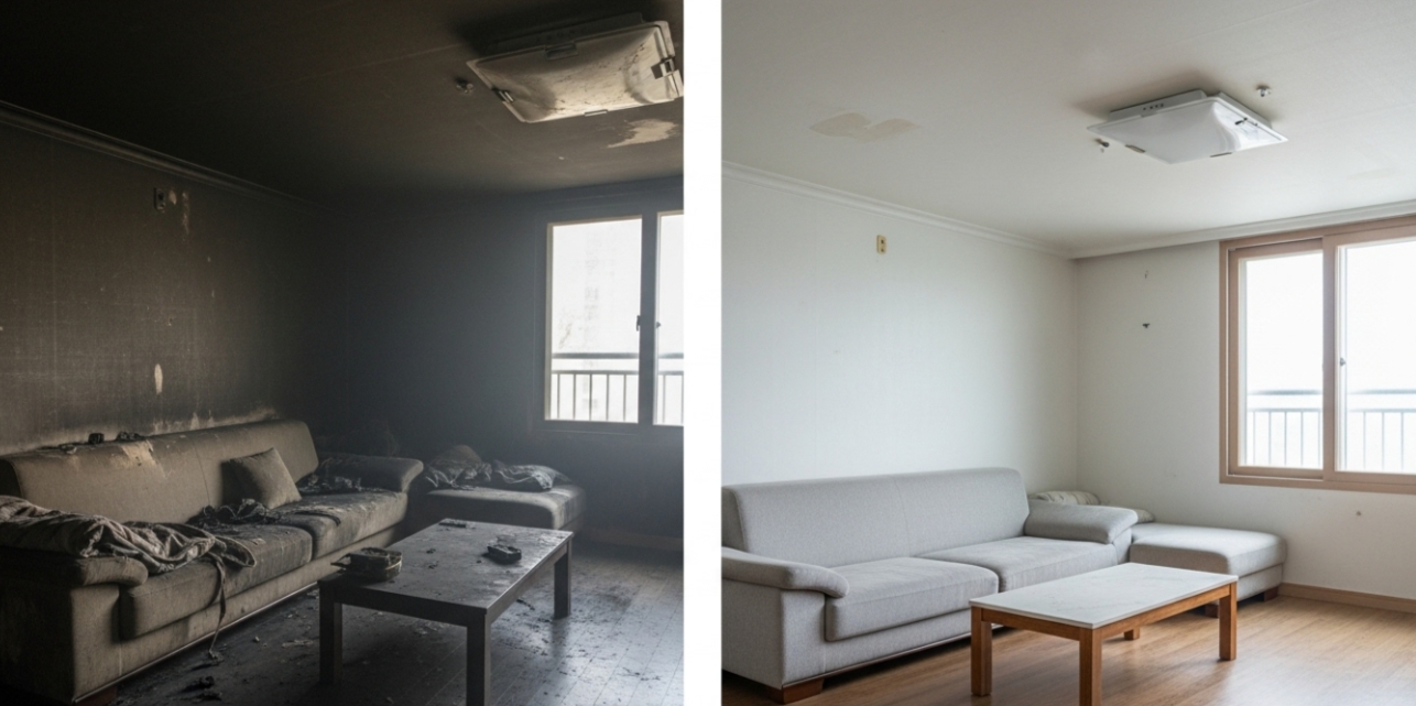 저희는 화재청소 전문업체로서 그을음 제거부터 구조 복원, 그리고 다세대주택 인테리어까지 원스톱으로 제공하며, 복잡한 다세대 화재 복구를 체계적으로 진행합니다.