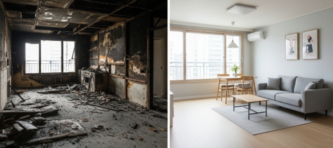 | 동두천 화재 청소 전문업체 , 아파트 도배공사 까지 화재복구 견적 (동두천시 연락처) (0) | 2025.10.24 |